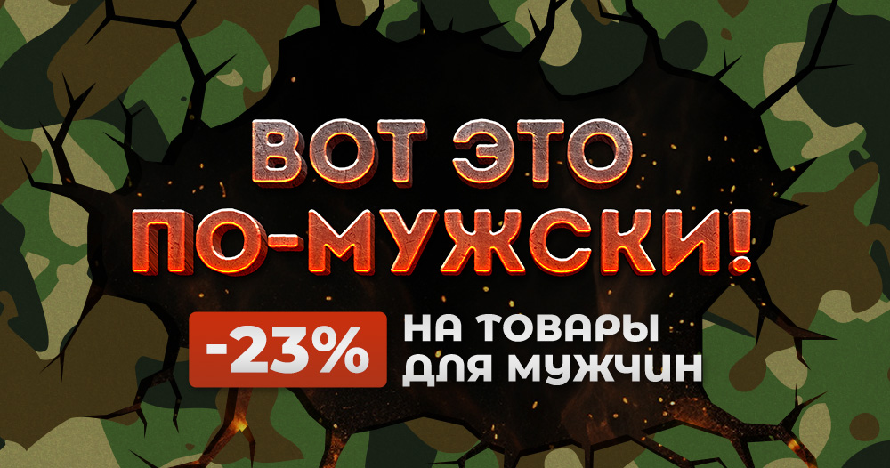 с 22.02. по 07.03. на сайте eto1.ru действуют скидки для настоящих мужчин. Автомагазин, инструменты и техника, спорт и туризм все это со скидкой 23%.